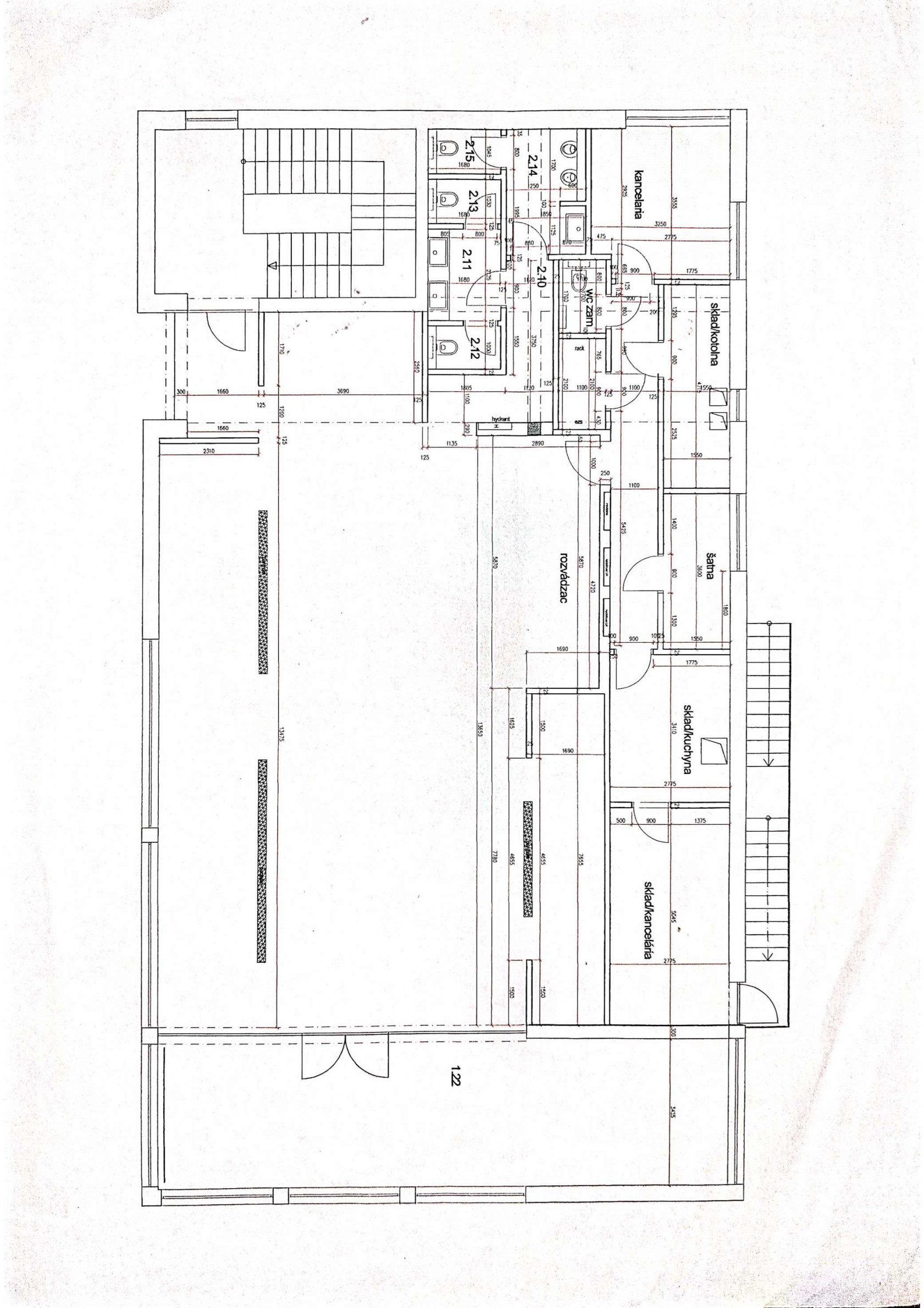 Celková výmera priestorov je 280m2, z toho 200m2 sú open space priestory, 80m2 tvorí zázemie pozostávajúce z jerdnej veľkej väčšej kancelárie a troch skladových (resp. kancelárskych) priestorov, pánskych a dámskych toaliet plus toalety pre personál, z technickej miestnosti, predsiene a chodby.