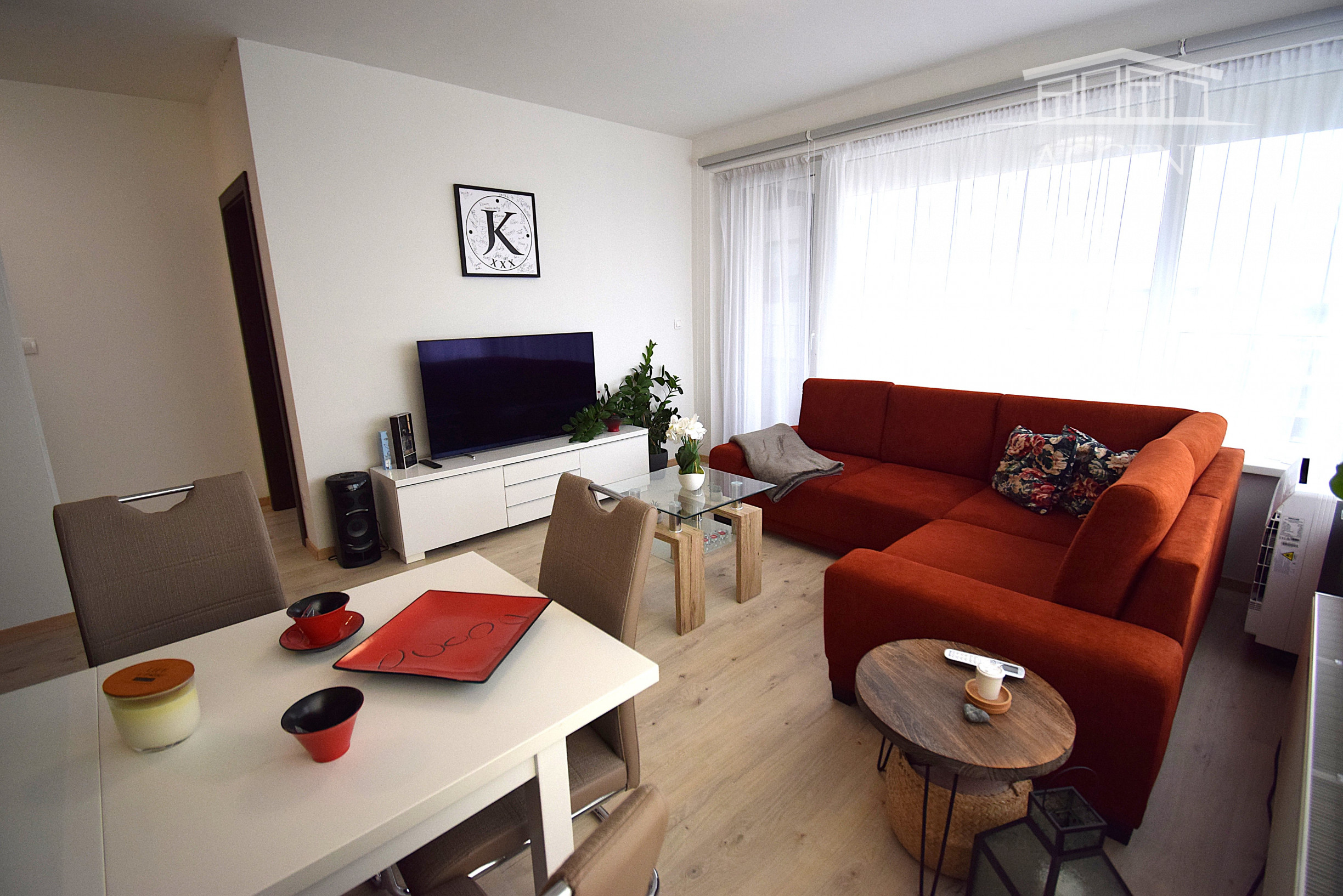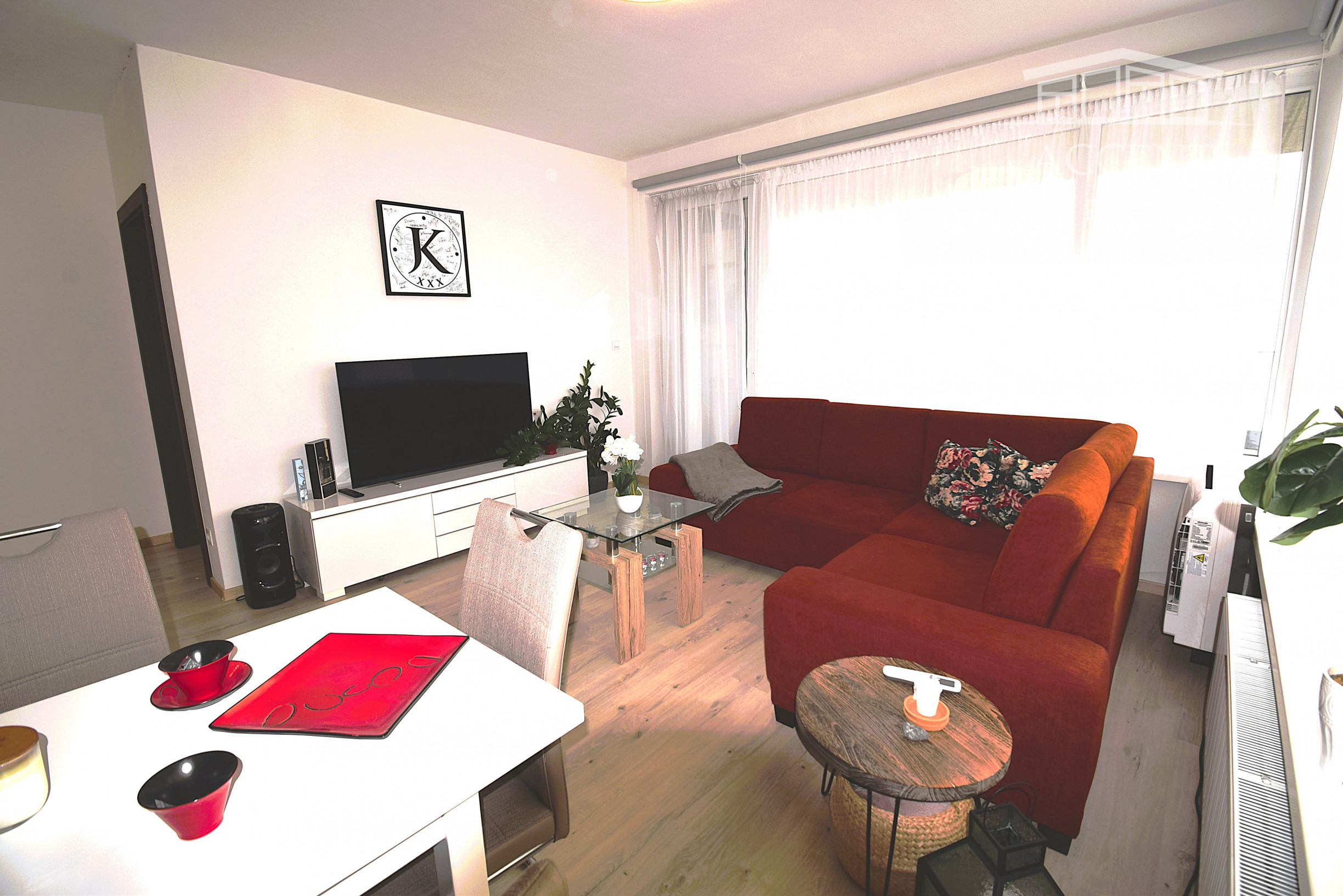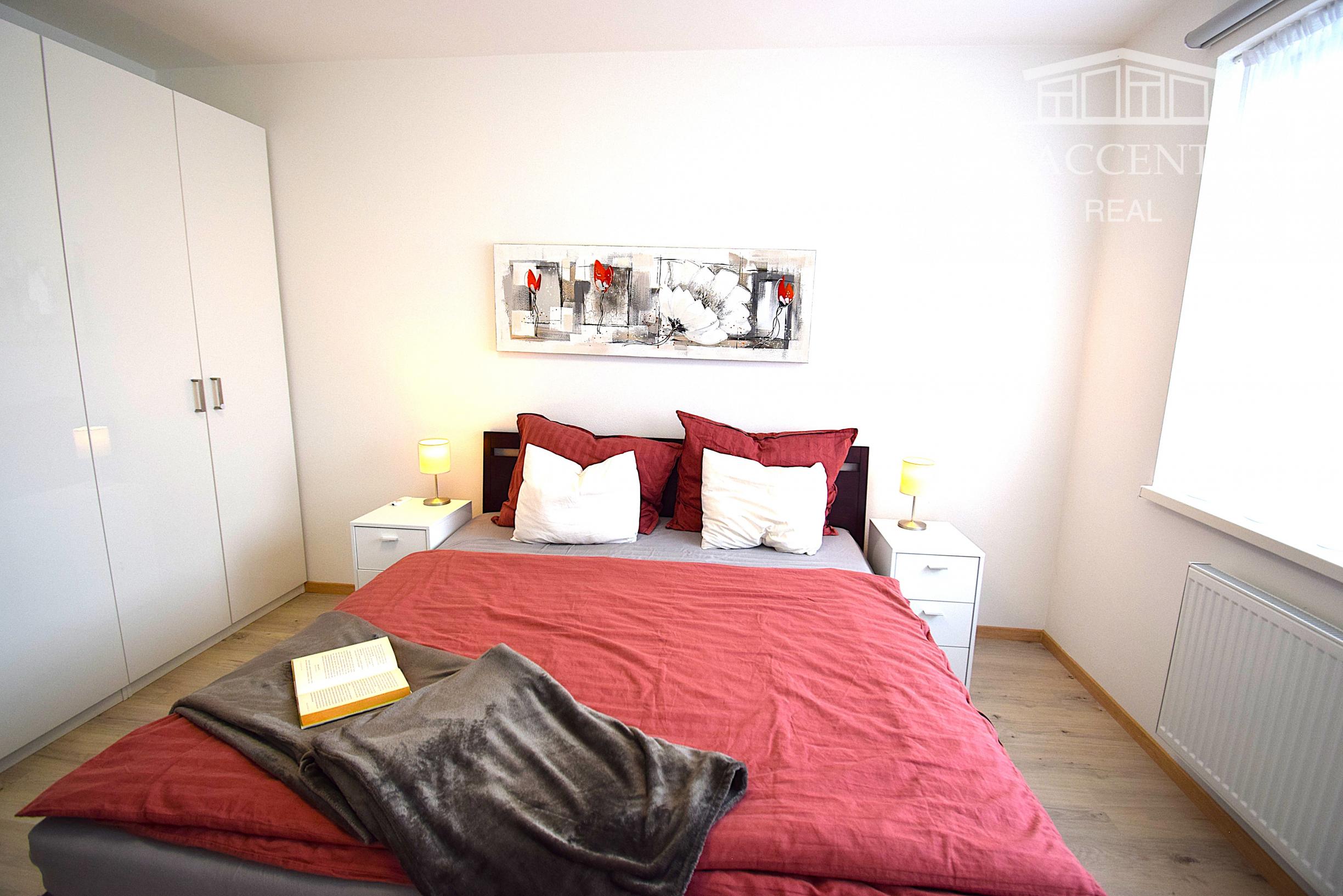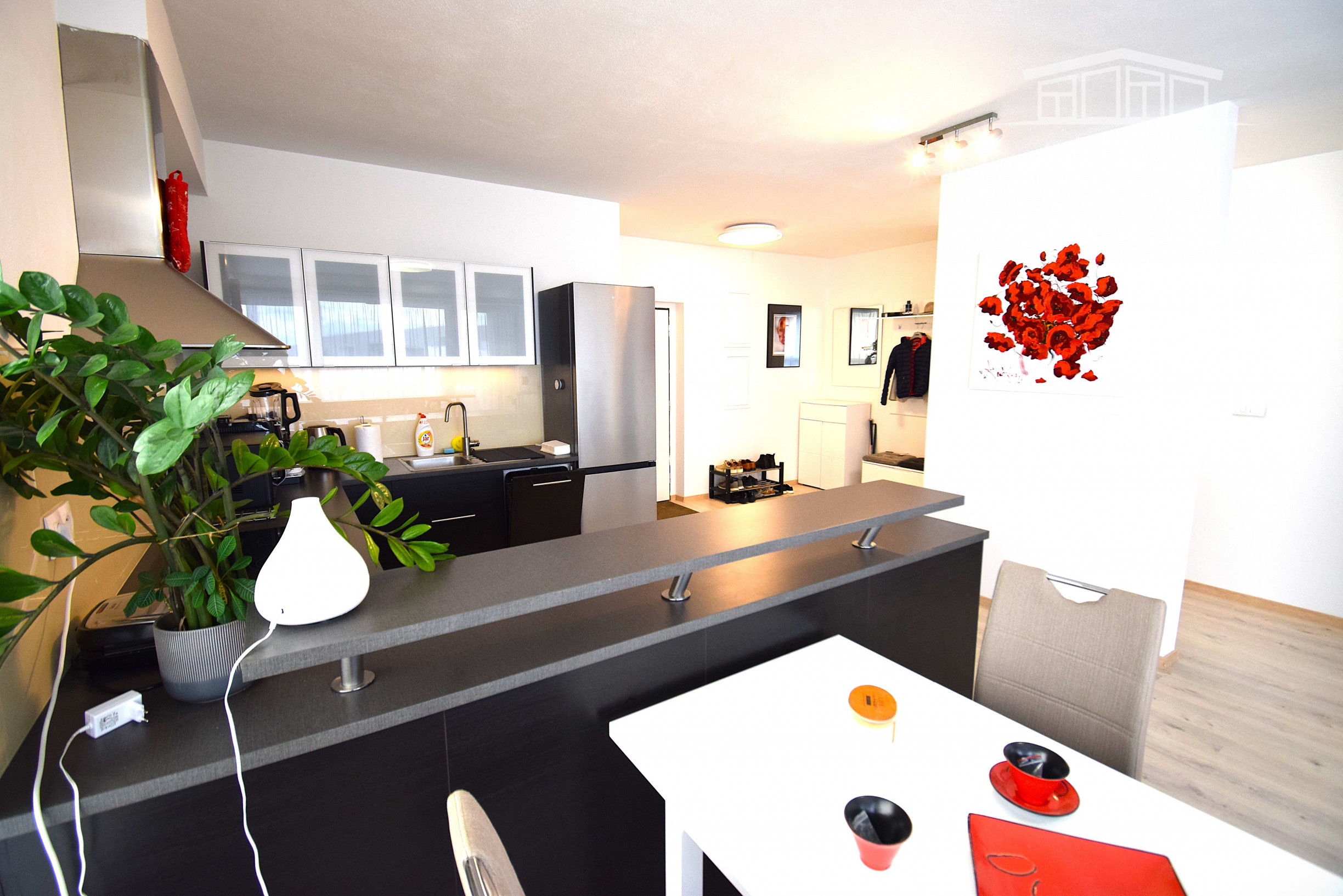 Z chodby sa pohodlne dostanete do všetkých častí bytu. Denná časť pozostáva z modernej kuchyne vrátane vstavaných spotrebičov s množstvom úložného priestoru a dostatkom pracovnej plochy, jedálenský stôl so stoličkami a svetlá obývacia izba s krásnym výhľadom na zeleň vnútrobloku.Spálňa ponúka bohatý úložný priestor a priamy vstup na lóggiu, ktorá má vstup aj s obývacej izby. V kúpeľni sa nachádza veľká vaňa, práčka a sušička. V byte je samostatná toaleta.
