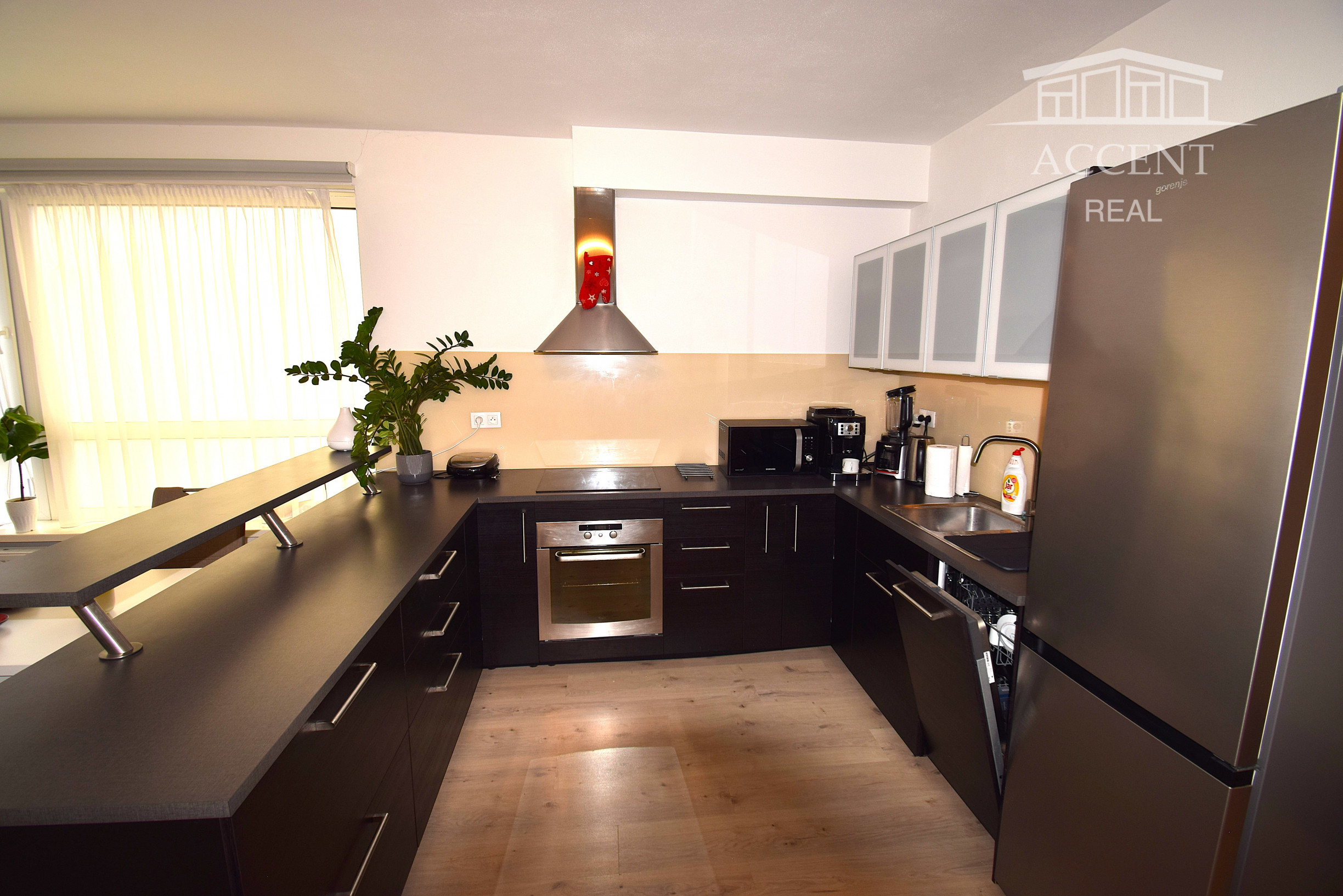 - kompletne zariadená kuchyňa(indukčná varná doska, elektrická trúba, mikrovlnka, umývačka riadu, digestor)