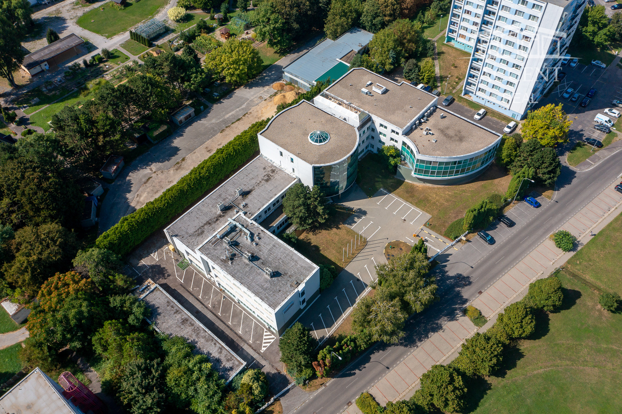Súčasťou areálu sú sadové úpravy a automatický zavlažovací systém.