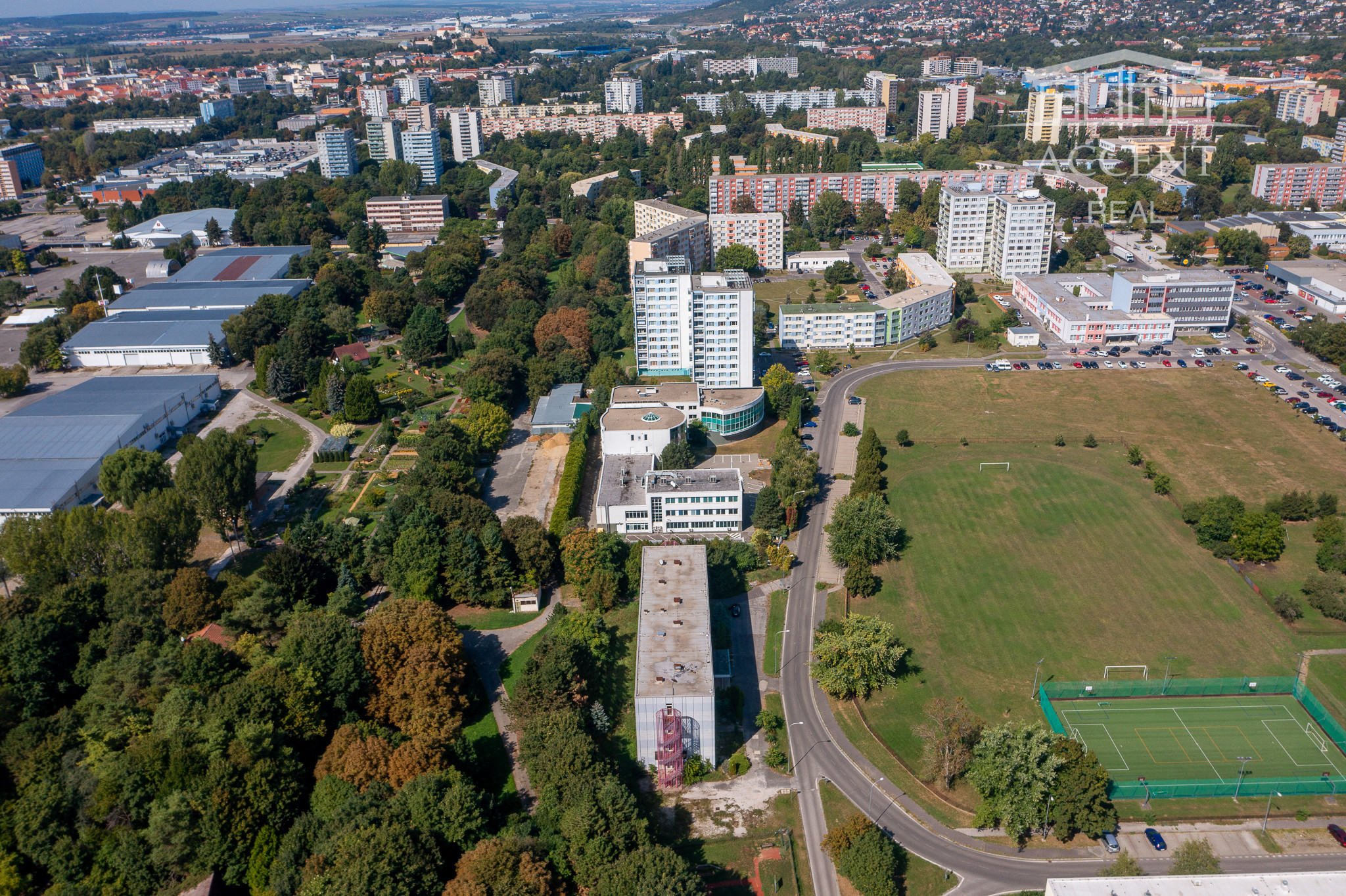Súčasťou areálu sú sadové úpravy a automatický zavlažovací systém.