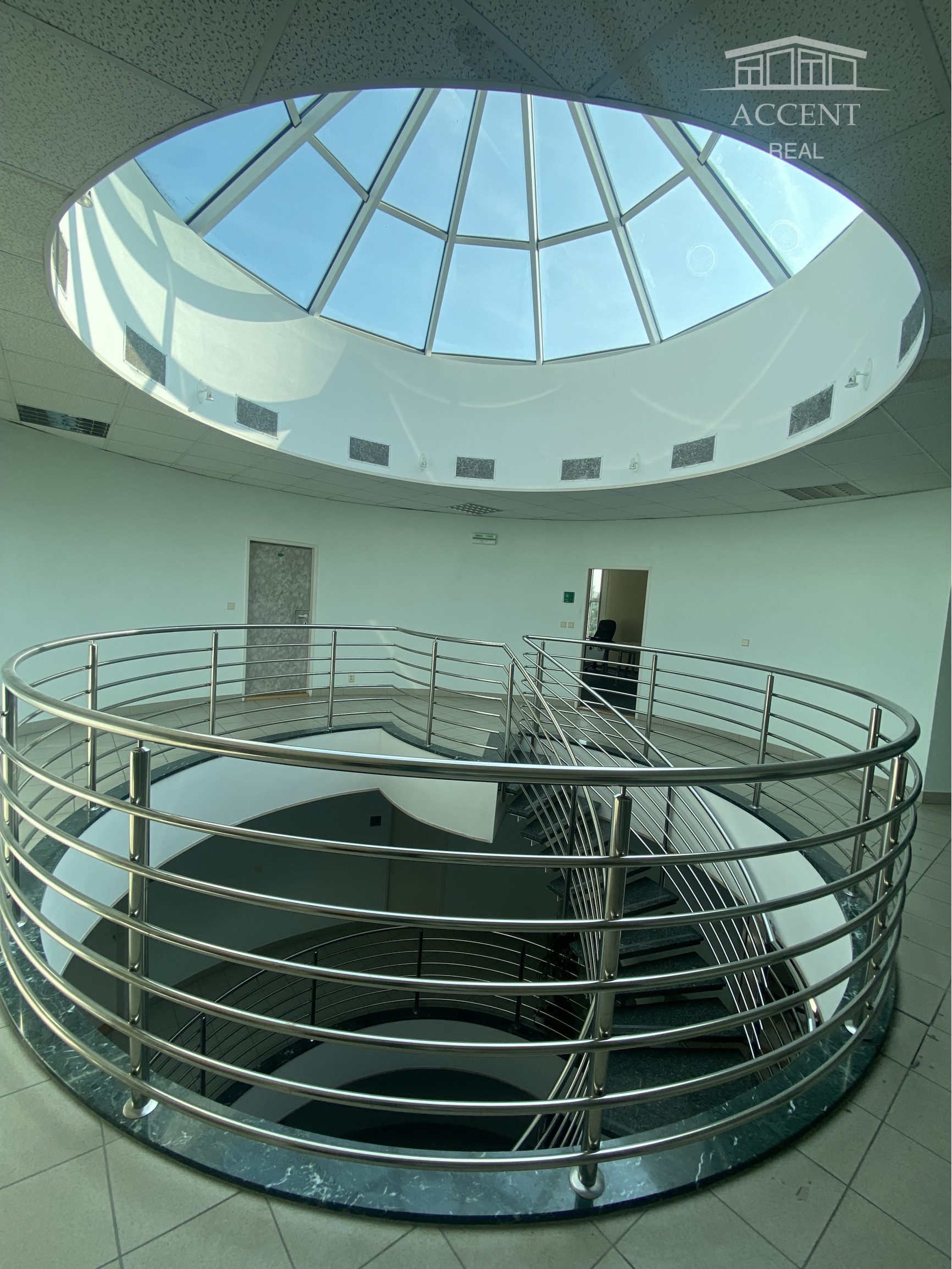 Vo vstupnej hale sa nachádzajú toalety, zasadačka s kuchynkou pre 12 ľudí, osobný výťah do 4NP a prepojovacia chodba ku kancelárskym priestorom.