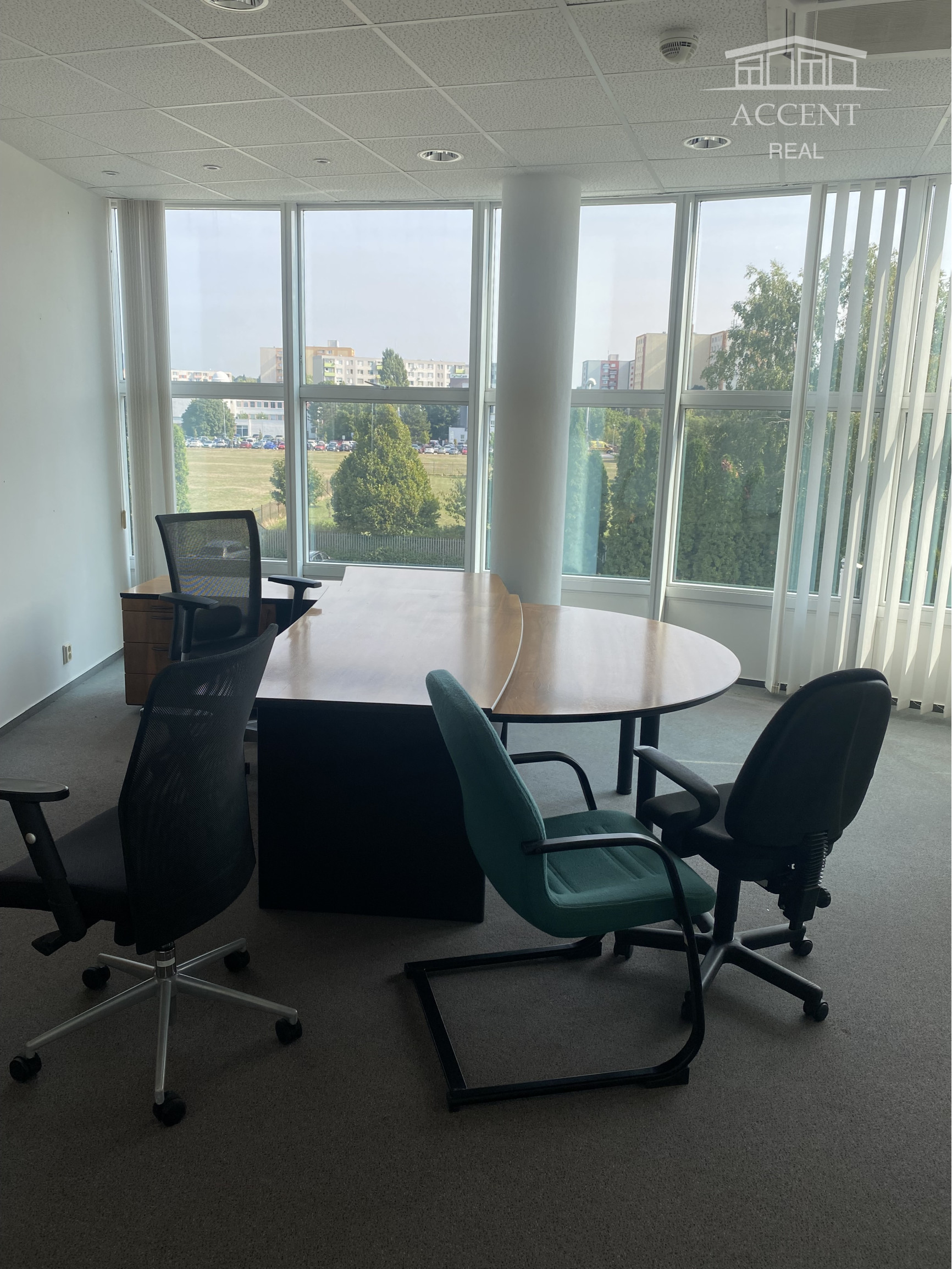 Všetky kancelárske priestory sú klimatizované, zariadené nábytkom, podlahová krytina je koberec. Podlahy chodieb a sociálnych zariadení pokrýva sklokeramická dlažba.