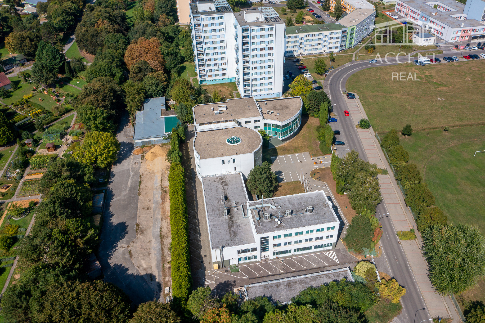 Súčasťou areálu sú sadové úpravy a automatický zavlažovací systém.