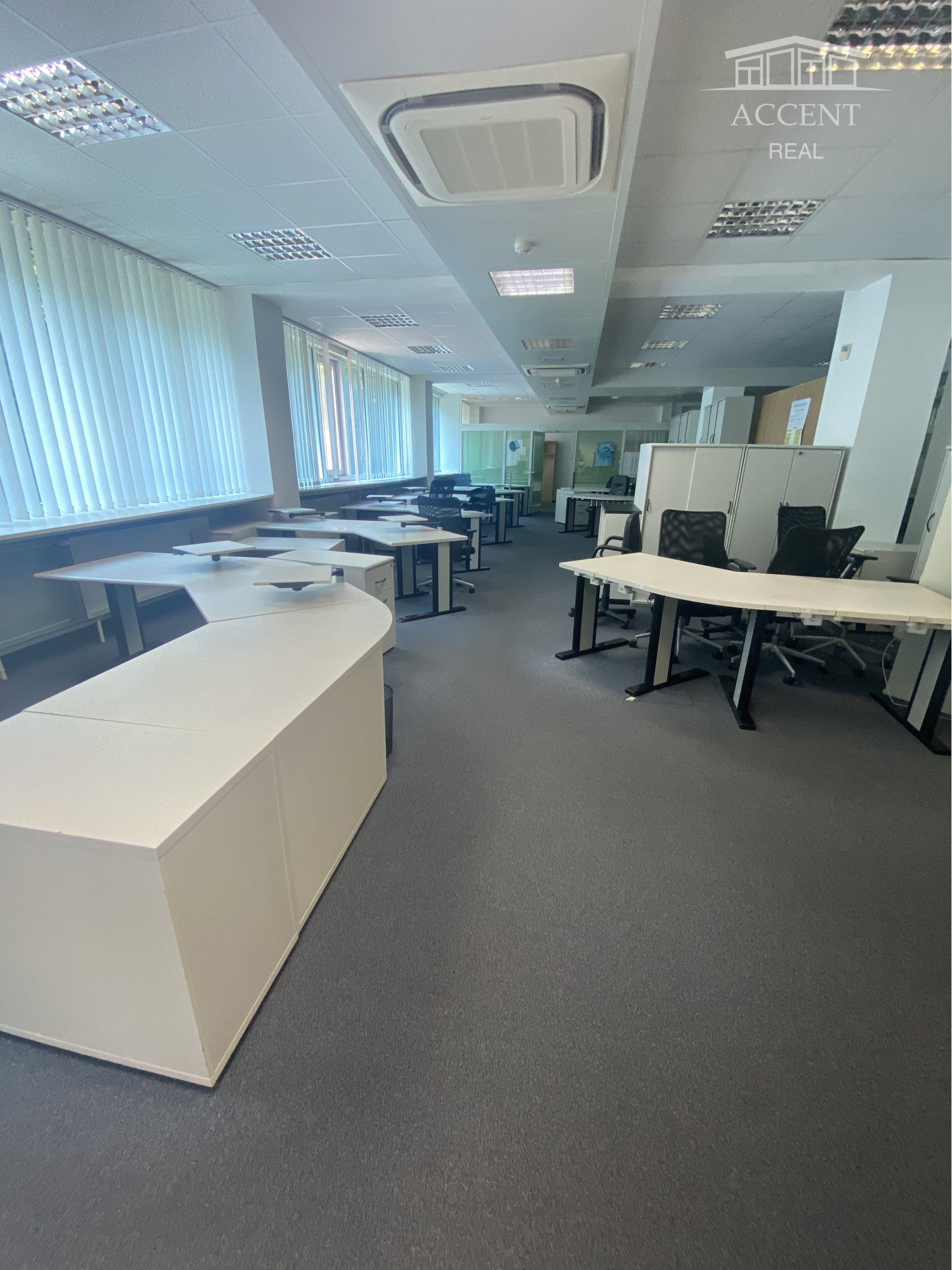 Všetky kancelárske priestory sú klimatizované, zariadené nábytkom, podlahová krytina je koberec. Podlahy chodieb a sociálnych zariadení pokrýva sklokeramická dlažba.