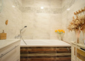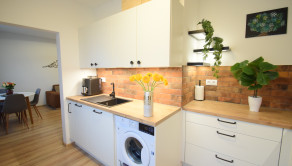 Celý byt pôsobí vzdušným a svetlým dojmom. Pri rekonštrukciiboli použité kvalitné materiály.