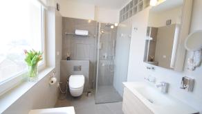 - kúpeľňa obložená gresovým obkladom na tenkú škáru, sprchový kút a vaňa