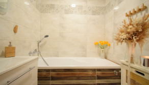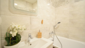 Celý byt pôsobí vzdušným a svetlým dojmom. Pri rekonštrukciiboli použité kvalitné materiály.