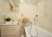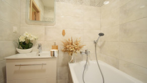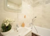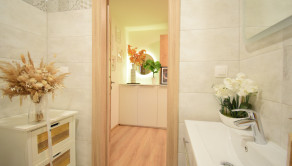 Celý byt pôsobí vzdušným a svetlým dojmom. Pri rekonštrukciiboli použité kvalitné materiály.