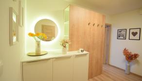 Celý byt pôsobí vzdušným a svetlým dojmom. Pri rekonštrukciiboli použité kvalitné materiály.