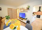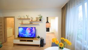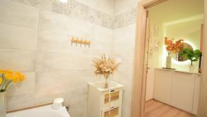 Celý byt pôsobí vzdušným a svetlým dojmom. Pri rekonštrukciiboli použité kvalitné materiály.