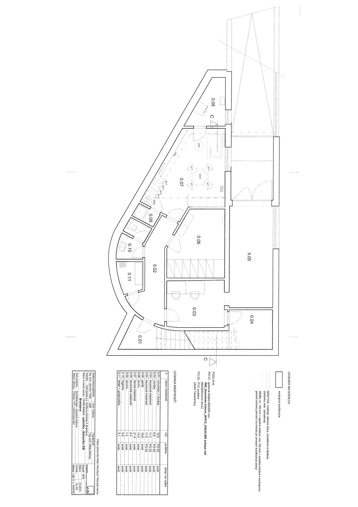 V suteréne sú situované skladové priestory, archívy, šatne, sociálne zariadenia, zázemie, technická miestnosť.