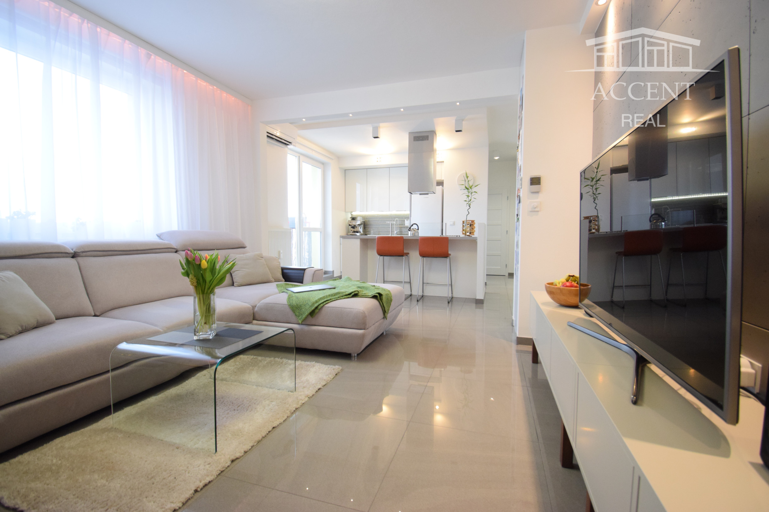ACCENT REAL ponúka exkluzívne na prenájom výnimočný, dizajnový a priestranný 2 izbový byt so šatníkom a balkónom vo vyhľadávanej časti Ružinova na Tnávke. Byt je situovaný na 3 . poschodí z 5, zrekonštruovanej tehlovej bytovky, na ktorej bola postavená nadstavba v roku 2006. Byt bol projektovaný a realizovaný bytovým architektom na mieru. V byte je veľa elektronických vychytávok, ako svetlá na diaľkové ovládanie, či klimatizácia ovládaná cez internet.