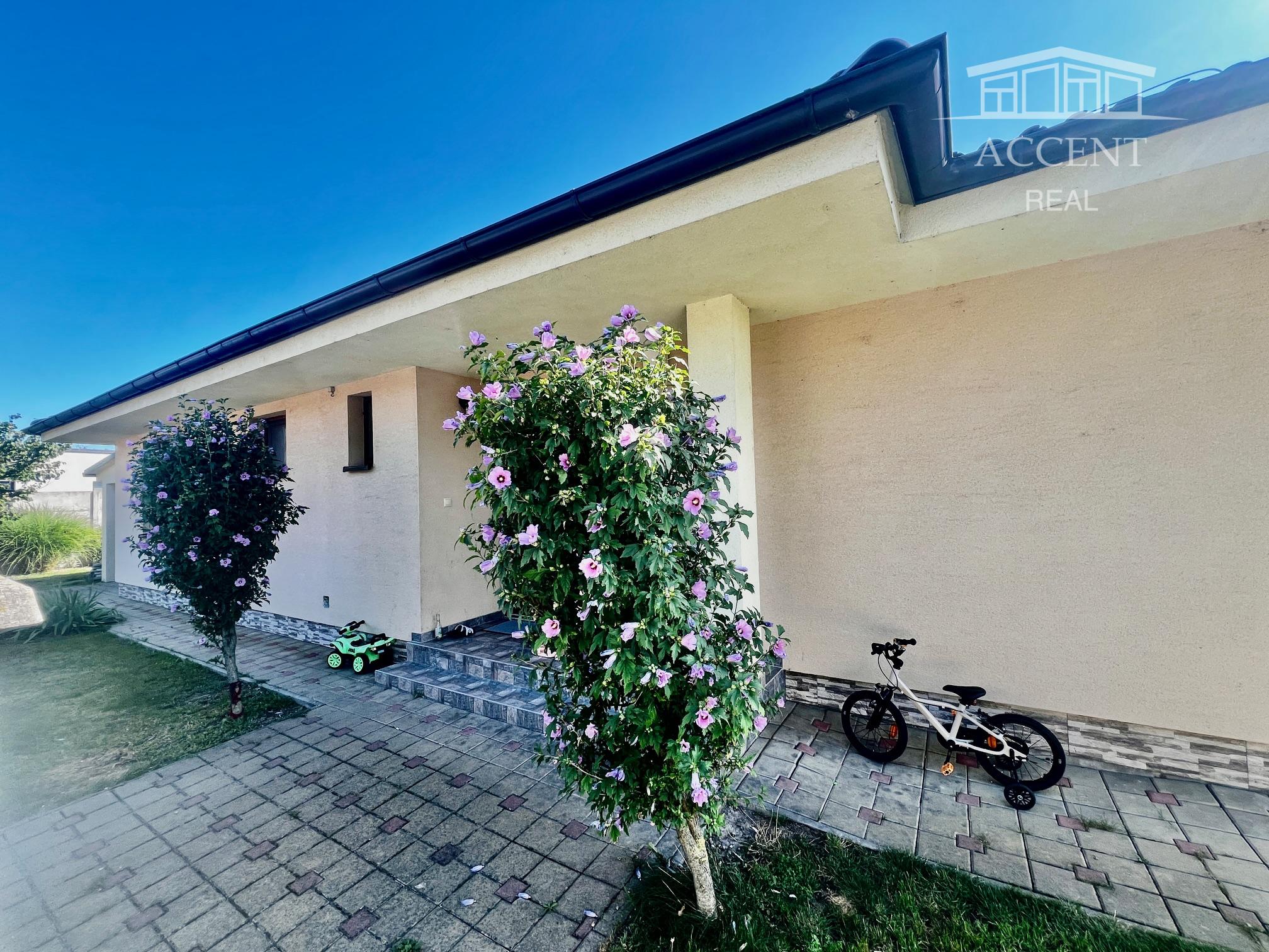 Úžitková plocha domu je 188m2, dom disponuje aj terasou s výmerou 25m2 a ďalšou všestranne využiteľnou spevnenou plochou. K domu prináleží garáž. Rozloha pozemku s peknou, udržiavanou záhradou s množstvom zelene je 550m2. Dom je tehlový, zateplený, s valbovou strechou.