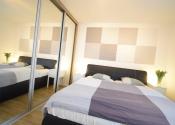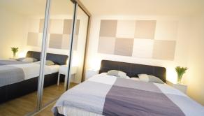 - v spálni veľká rolldor skriňa s manželskou postelou a televízorom