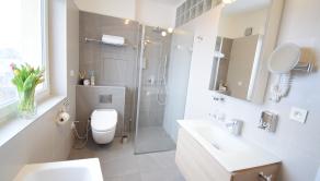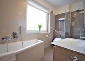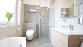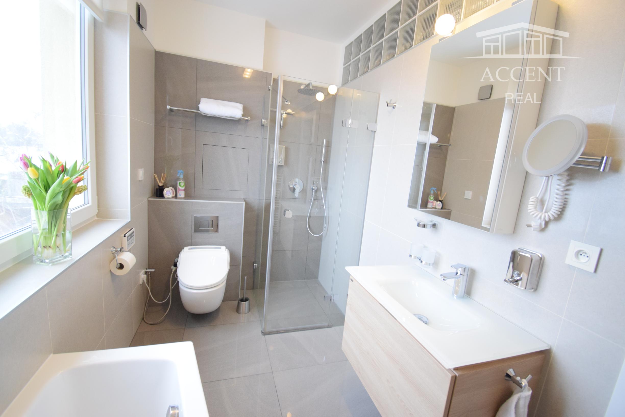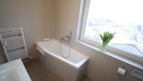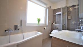 - kúpeľňa obložená gresovým obkladom na tenkú škáru, sprchový kút a vaňa