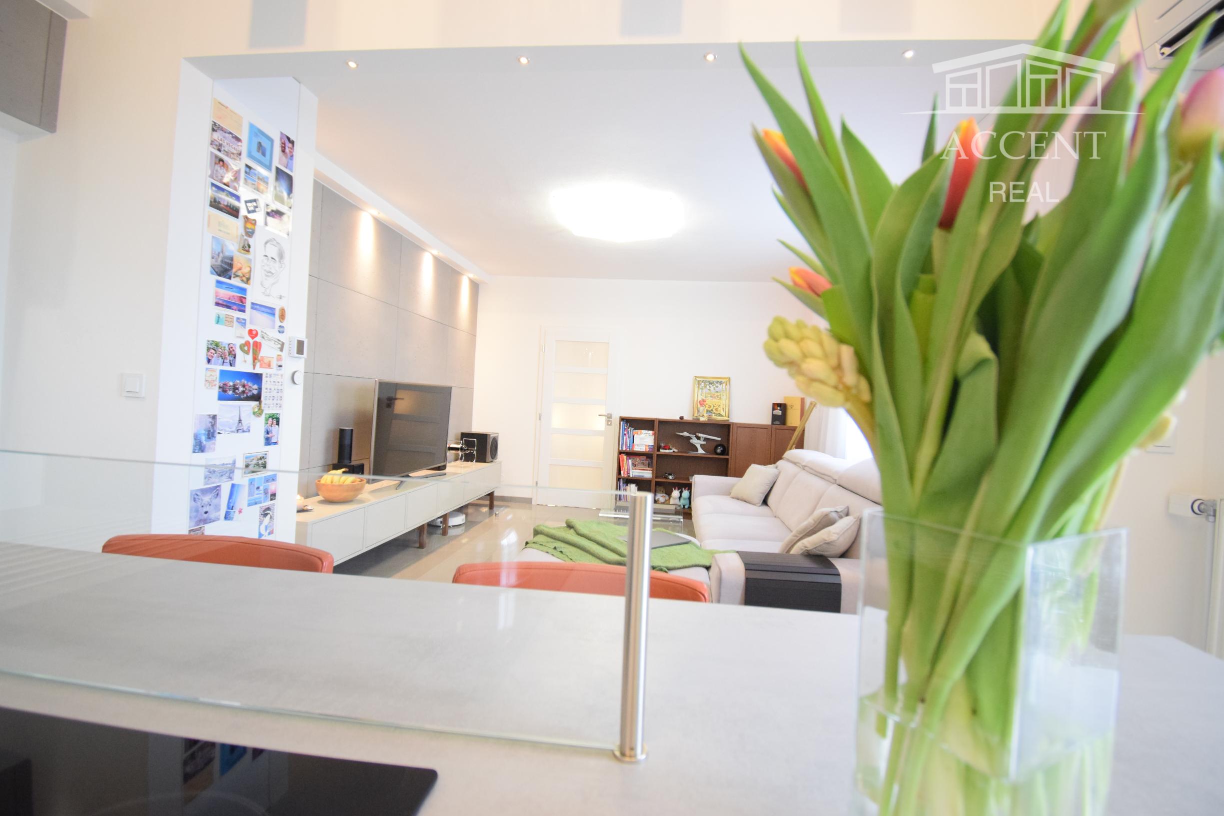ACCENT REAL ponúka exkluzívne na prenájom výnimočný, dizajnový a priestranný 2 izbový byt so šatníkom a balkónom vo vyhľadávanej časti Ružinova na Tnávke. Byt je situovaný na 3 . poschodí z 5, zrekonštruovanej tehlovej bytovky, na ktorej bola postavená nadstavba v roku 2006. Byt bol projektovaný a realizovaný bytovým architektom na mieru. V byte je veľa elektronických vychytávok, ako svetlá na diaľkové ovládanie, či klimatizácia ovládaná cez internet.