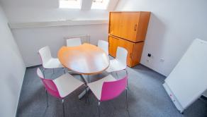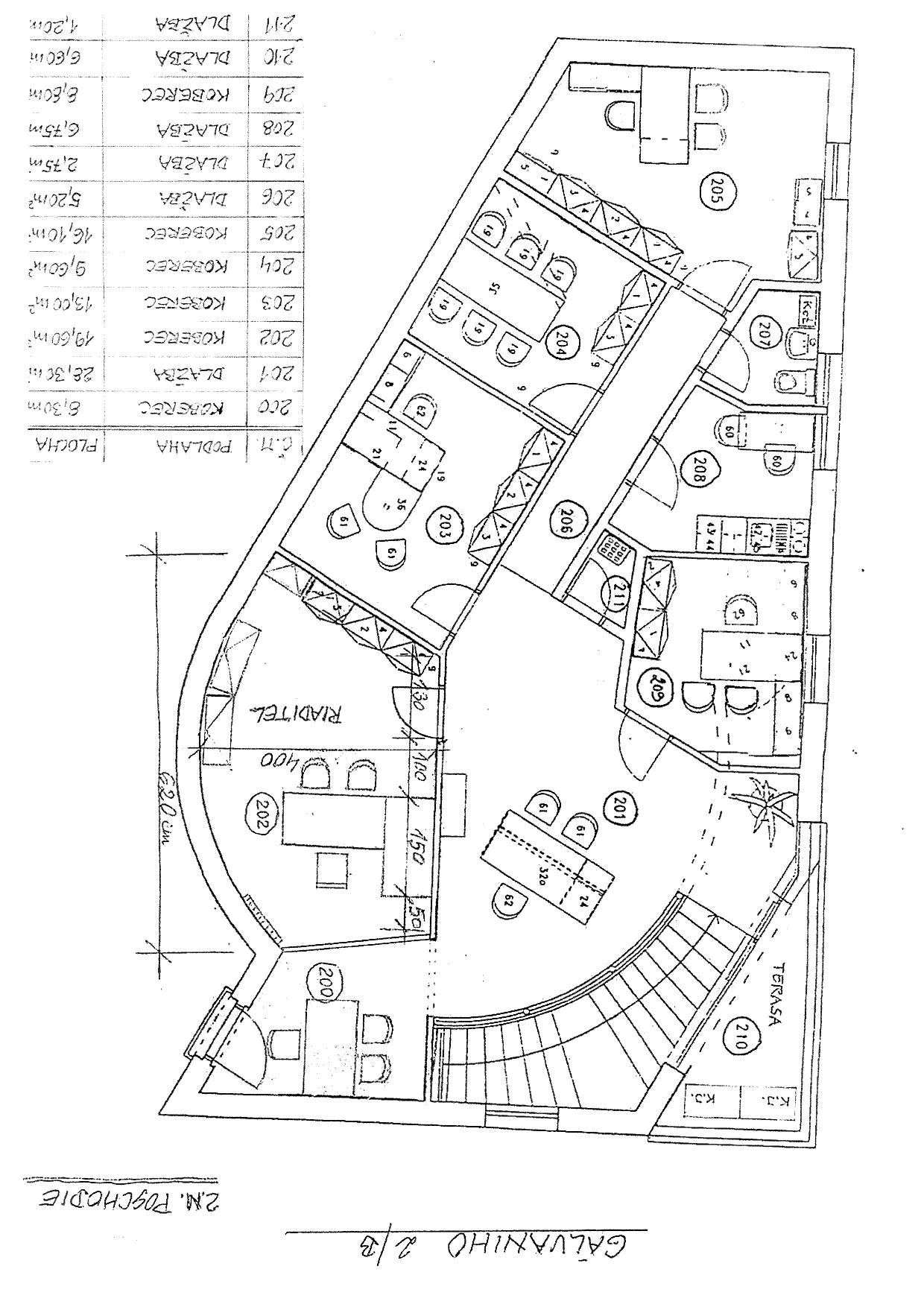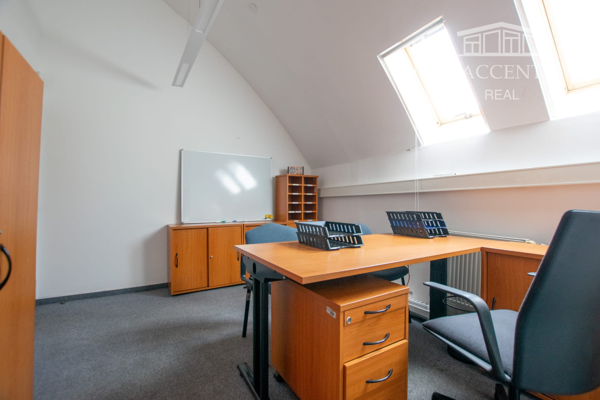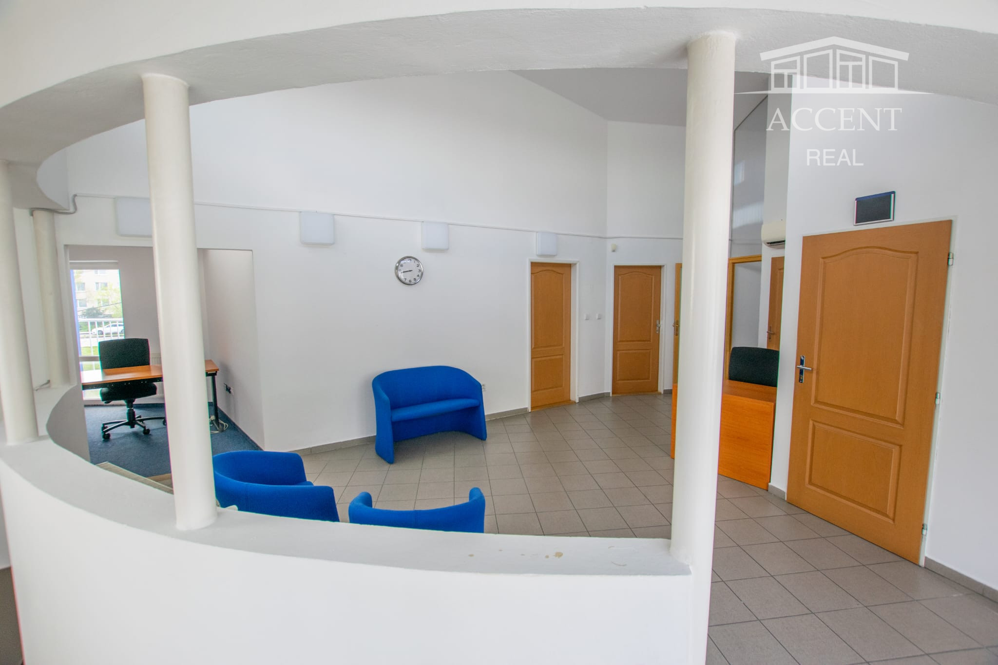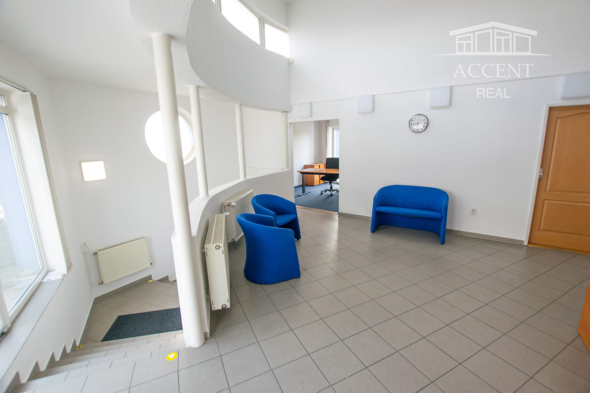 Poschodie má vlastný vstup zo schodiska z exteriéru budovy, je disponované ako centrálna vstupná hala a 6 samostatných kancelárií, sociálne zariadenia.