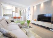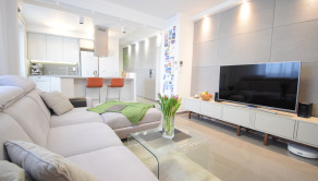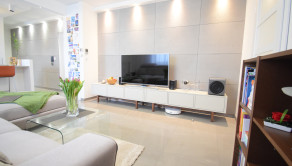 Celý byt má útulnú atmosféru aj vďaka svetelným efektom a množstvu bodových svetiel.