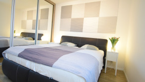 - v spálni veľká rolldor skriňa s manželskou postelou a televízorom