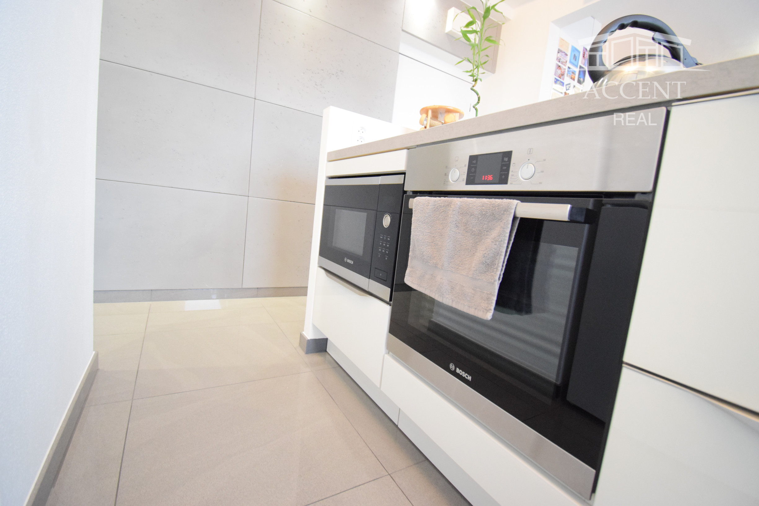 - kvalitné vstavané spotrebiče - varná doska zn Bosch, chladnička zn. Bosch, elektrická rúra a mikrovlnka zn. Bosch