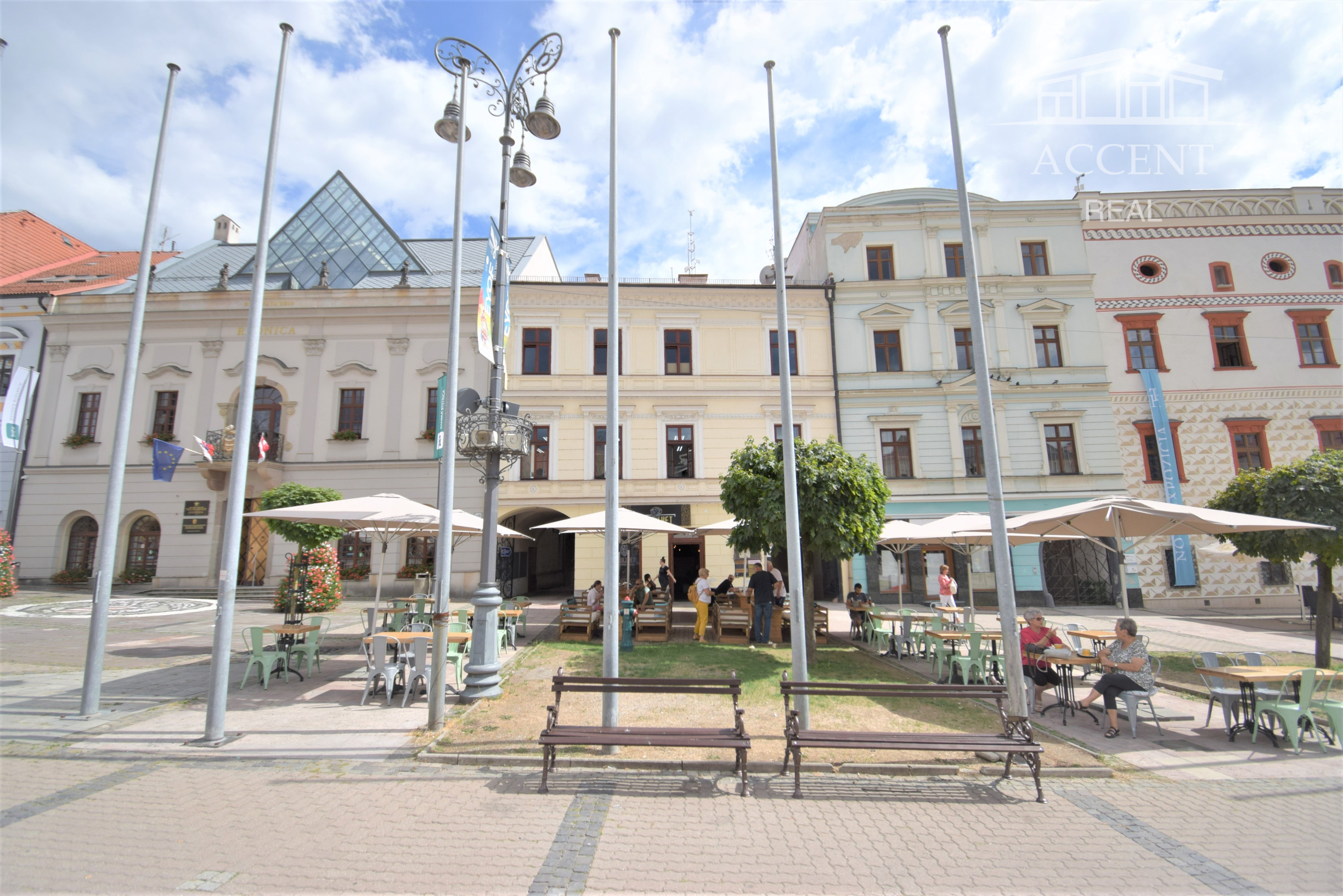 Prízemie: reštaurácia s terasou priamo z námestia (275m2)