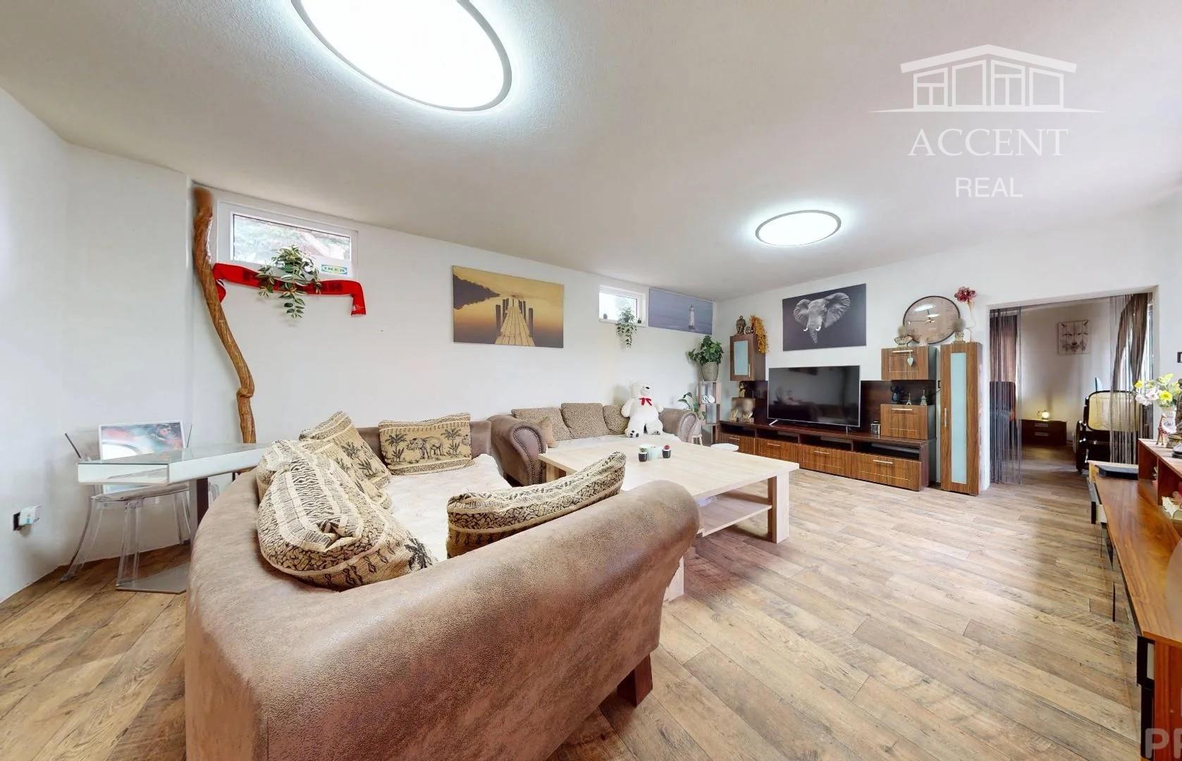 Výmery miestností: Predsieň 7,6 m2 • Izba: 20,9 m2 • Kuchyňa 16,22 m2 • Kúpeľňa 10,45 m2 • Obývacia izba: 26,75 m2 • Izba 25,75 m2, spolu úžitková plocha: 107, 67 m2 + 164m2 plocha pivnice