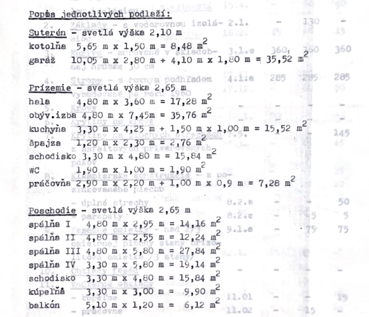 Poschodie: spálňa I: 14,16m2, spálňa II: 12,24m2, spálňa III: 27,84m2, spálňa IV: 19,14m2, schodisko: 15,84m2, kúpeľňa: 9,90m2, balkón: 6,12m2